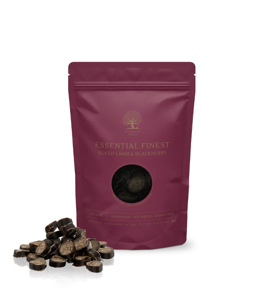 E¡Atención! Una vez que elijas FINEST como recompensa de entrenamiento, no volverás atrás. Las FINEST SLICED LAMB & BLACKBERRY son salchichas de cordero y mora en lonchas finas y deliciosas. ¡Un premio de entrenamiento de lujo! Hechas a mano y secadas al aire en Inglaterra: ¡menuda recompensa!